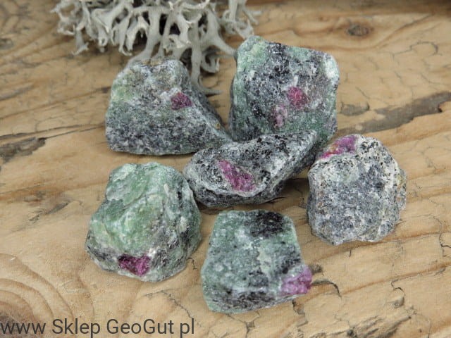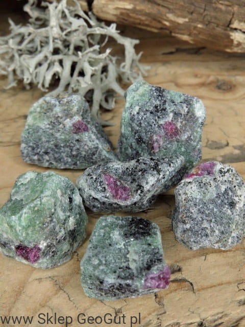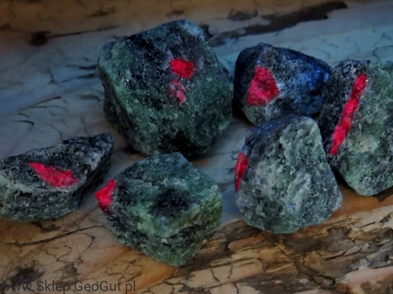 Rubin w zoisycie z Tanzanii – naturalny minerał fluorescencyjny UV