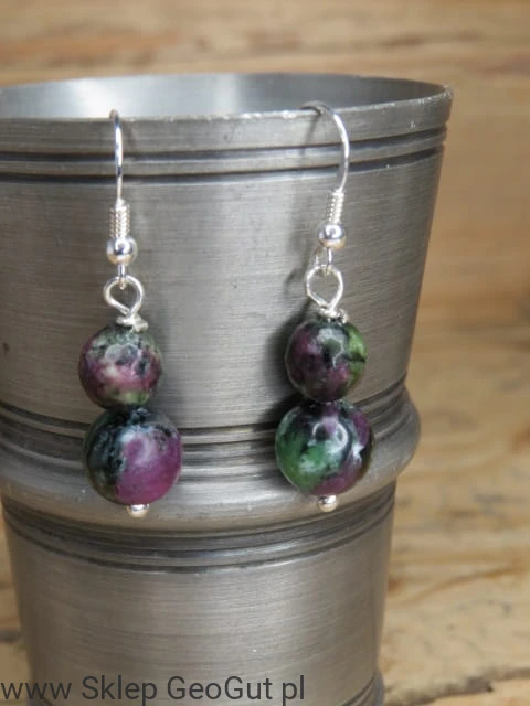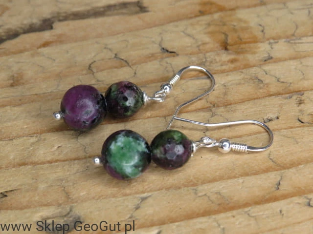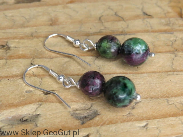 Kolczyki z naturalnego rubinu w zoisycie na otwartych biglach.