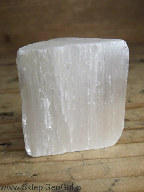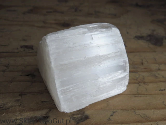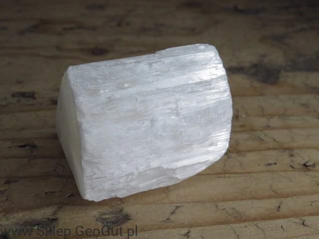 Krystaliczna forma gipsu - selenit. Zdjęcia przedstawiają sprzedawany okaz.
