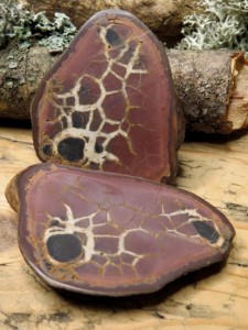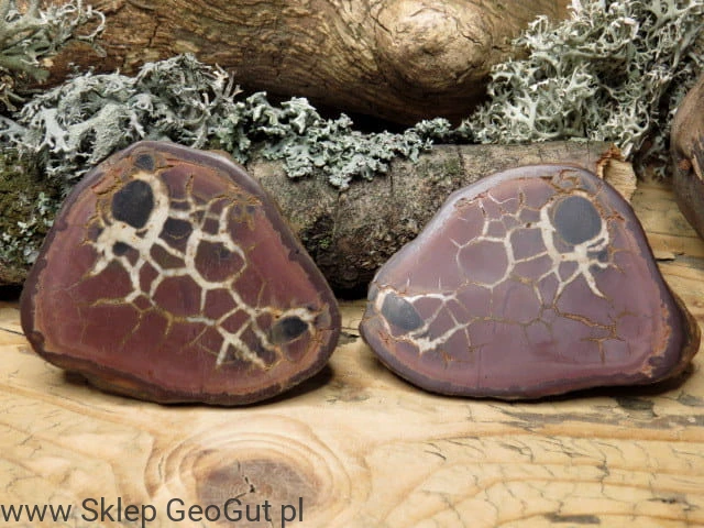 Septaria (sferosyderyt, syderyt ilasty) - przecięta i wypolerowana - dwie połówki.
