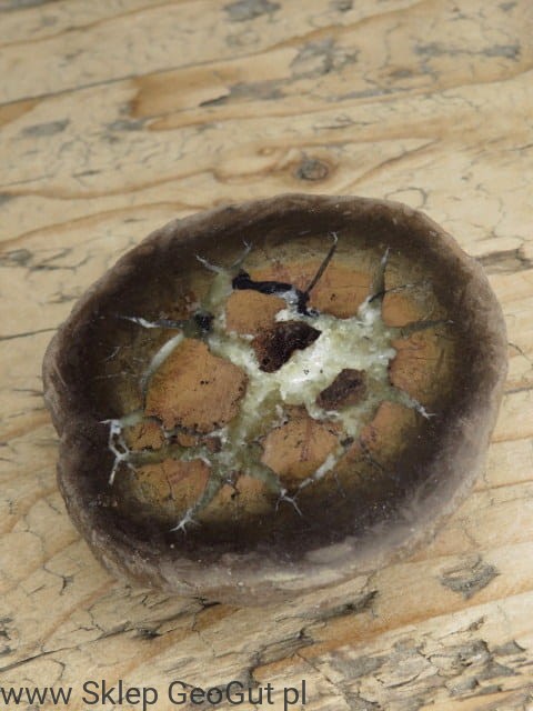 Septaria (sferosyderyt, syderyt ilasty) - jedna połówka wypolerowana.