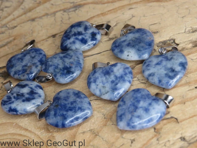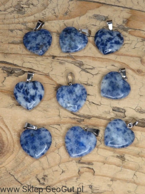 tylowy wisiorek w kształcie serca z naturalnego sodalitu, starannie wypolerowany obustronnie, zachwyca głęboką granatową barwą z charakterystycznymi jasnymi żyłkami. Sodalit to kamień kojarzony z harmonią, spokojem i jasnością umysłu, ceniony zarówno w biżuterii, jak i w praktykach relaksacyjnych.