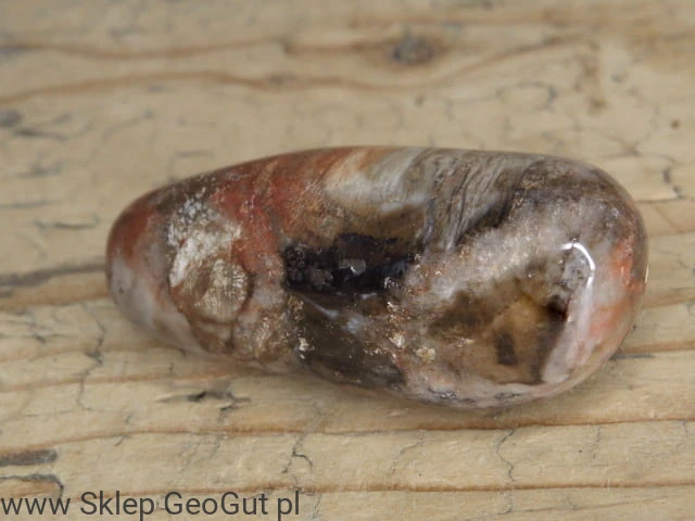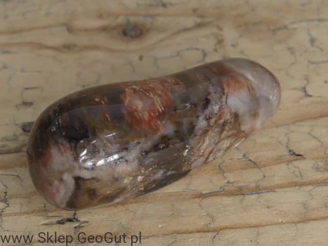 Skamieniałe drewno (bębniak). Kamień naturalny, polerowany - posiada nierówności, spękania i wgłębienia wynikające ze struktury kamienia.