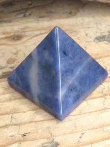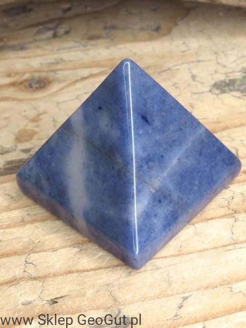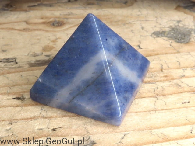 Piramida wykonana z naturalnego sodalitu – kamienia kojarzonego z jasnością umysłu, logiką i intuicją. W tradycji ezoterycznej uważany jest za pomocny w pracy intelektualnej oraz w rozwijaniu samoświadomości.