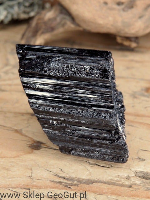 Turmaliny należą do gromady krzemianów i są minerałami kruchymi, o wyraźnej łupliwości i charakterystycznej, podłużnej budowie. Prezentowany okaz jest w pełni naturalny – widoczne struktury, przełamania i nieregularności stanowią autentyczne cechy minerału.