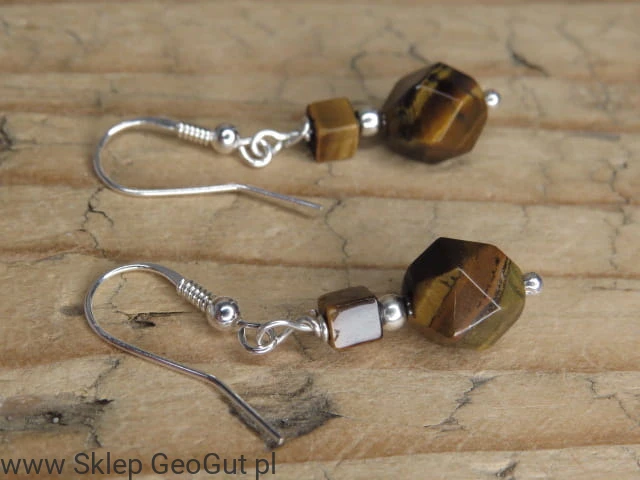 Wyjątkowe kolczyki z tygrysiego oka na biglach otwartych.
