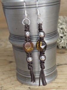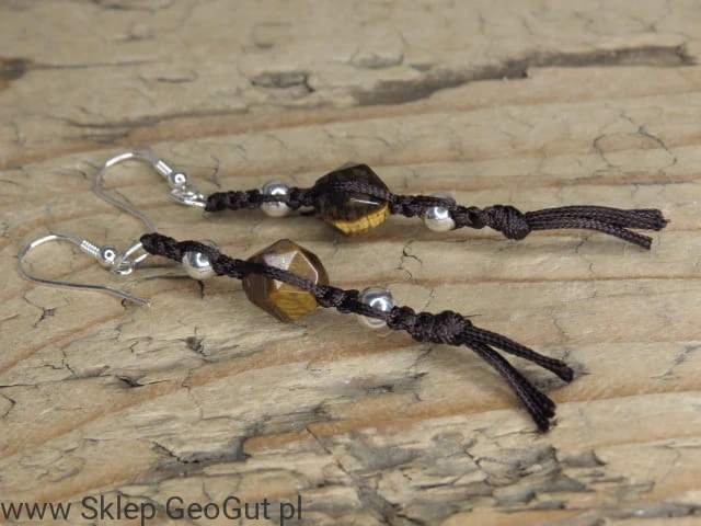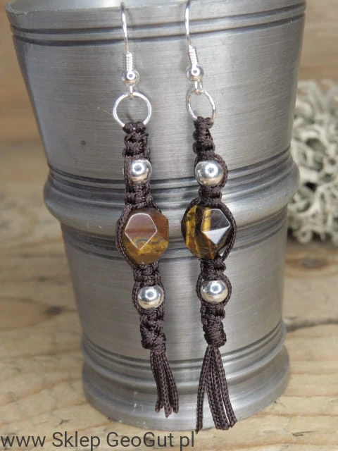 tygrysie oko* kolczyki makrama /Ag