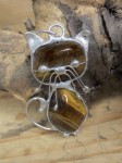 Wisior kotek z tygrysiego oka w oprawie miedziano-cynowej (metaloplastyka)