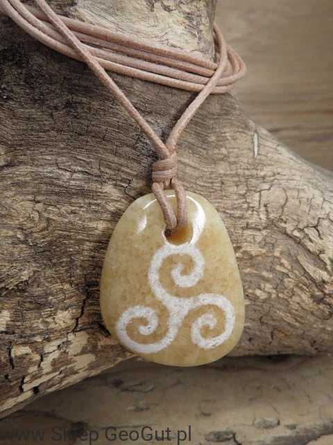 wisior triskelion na kamieniu - aragonit - amulet na rzemieniu