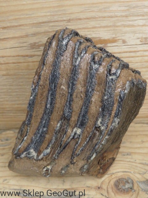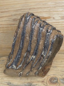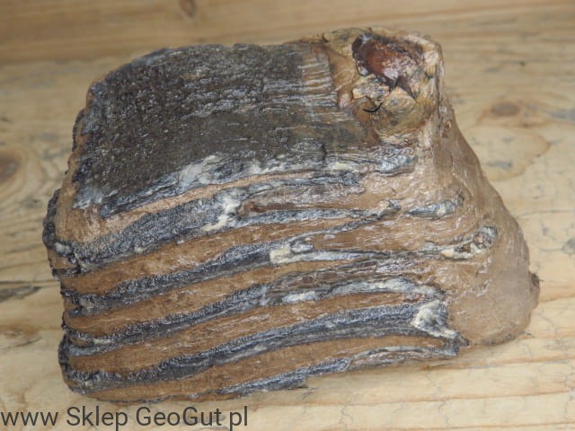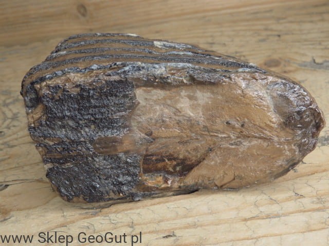 Fragment zęba mamuta - oryginalna skamieniałość (skamielina). Okaz zakonserwowany.
